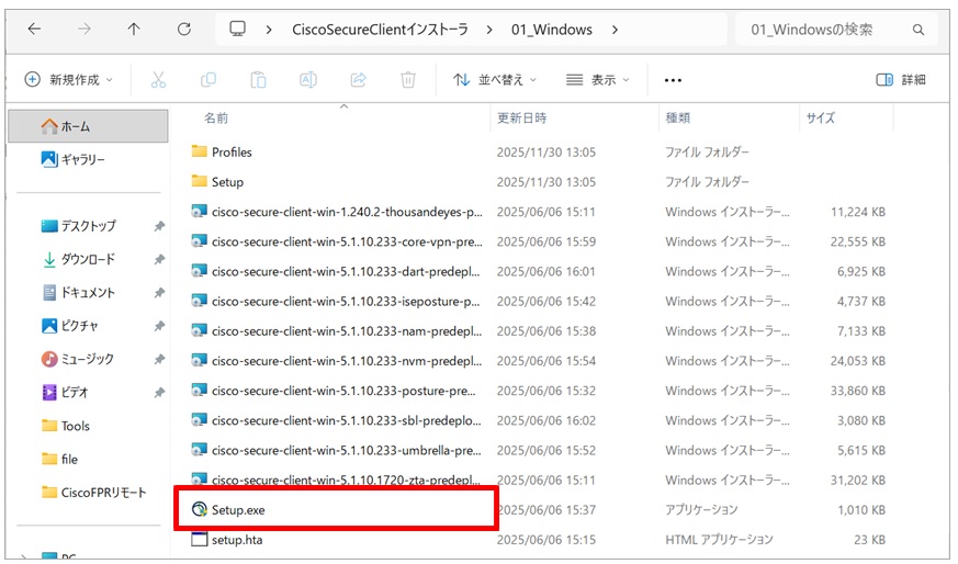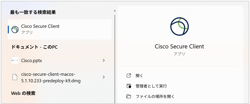 Windows端末でCisco Secure Clientをインストールする手順を記載します。