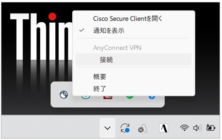 Windowsのインジケーターを右クリックすることで、接続や切断を行うことができます。