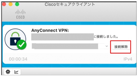 ① 「Cisco Secure Client」を起動し、切断をクリックします。