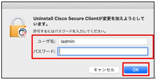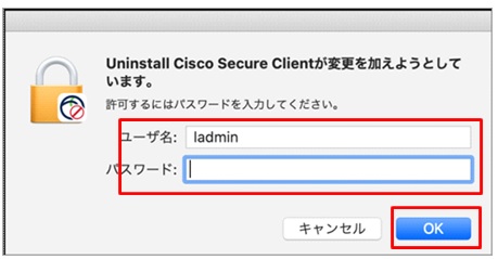 ③ macOSの管理者ユーザーID・PWを入力し、「OK」をクリックします。